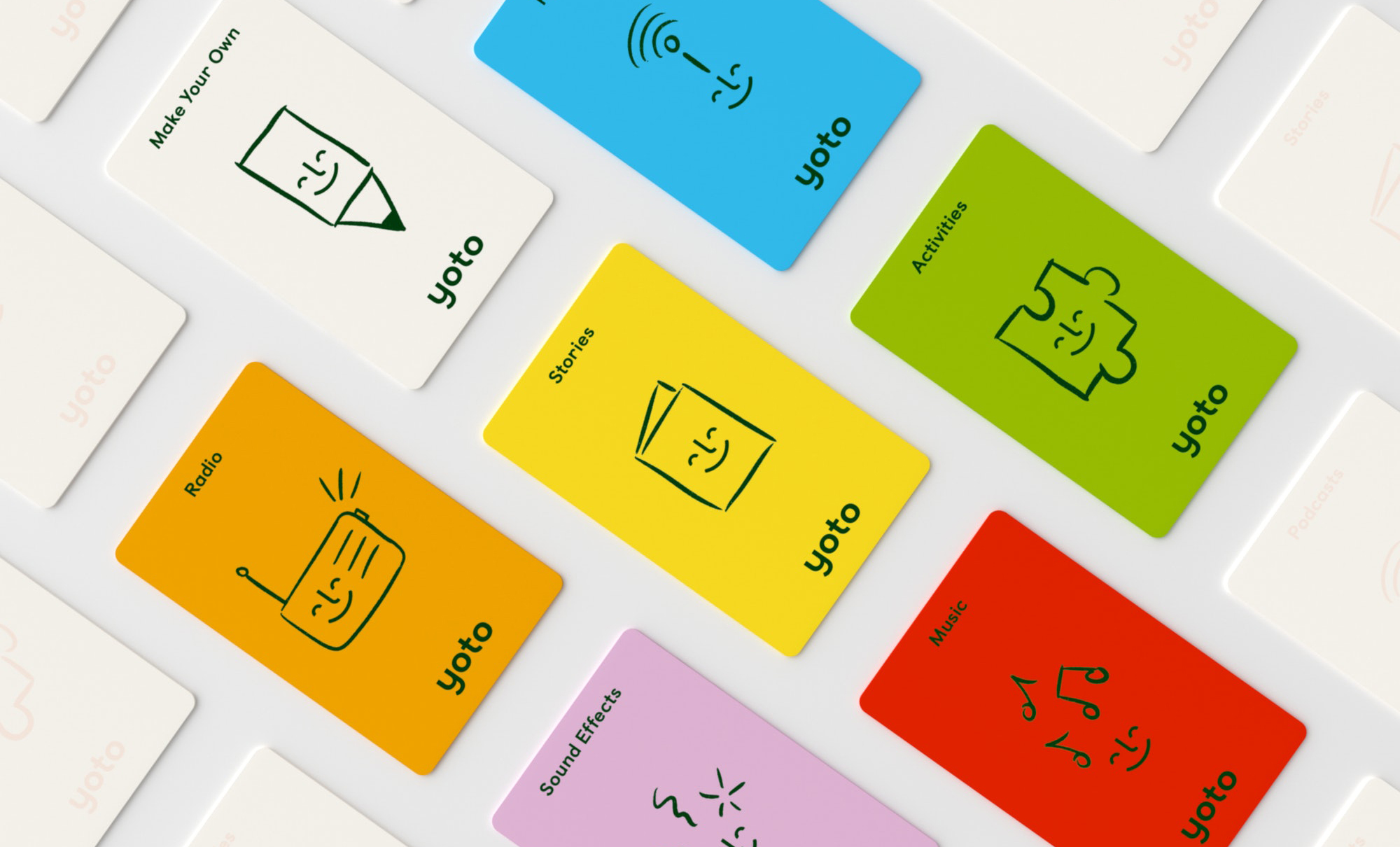 Pentagram developed the industrial design of the Yoto Player, the brand identity, packaging, visual identity, and look and feel for the website and app.